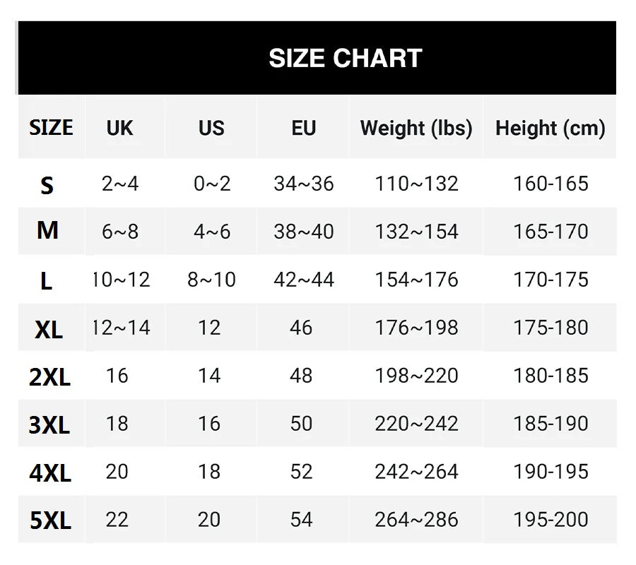 מידות: S,M,L,XL,2XL,3XL,4XL,5XL