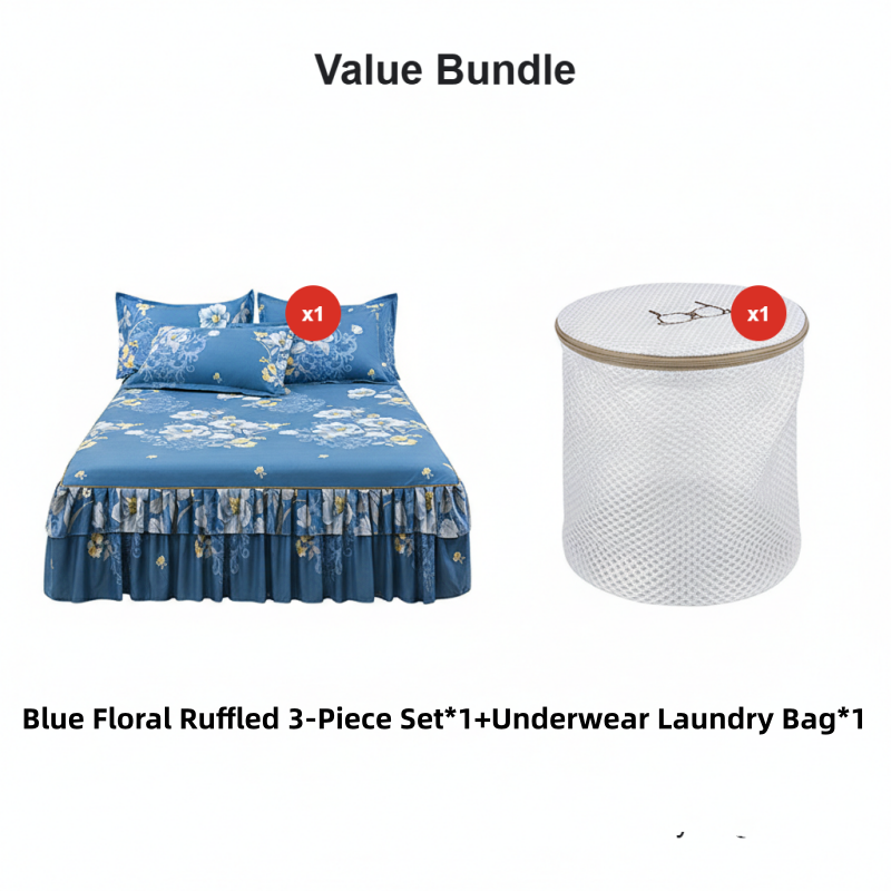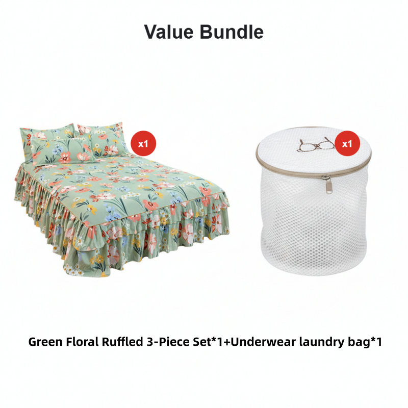 ⏳50% הנחה לזמן מוגבל⏰סט חצאית מיטה מקומטת 3 חלקים🛏️