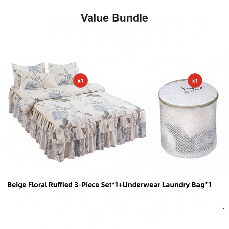 ✨ שדרגו את האלגנטיות של חדר השינה שלכם - סט 3 חלקים עם חצאית מיטה וקפלים בהדפס פרחוני! ✨