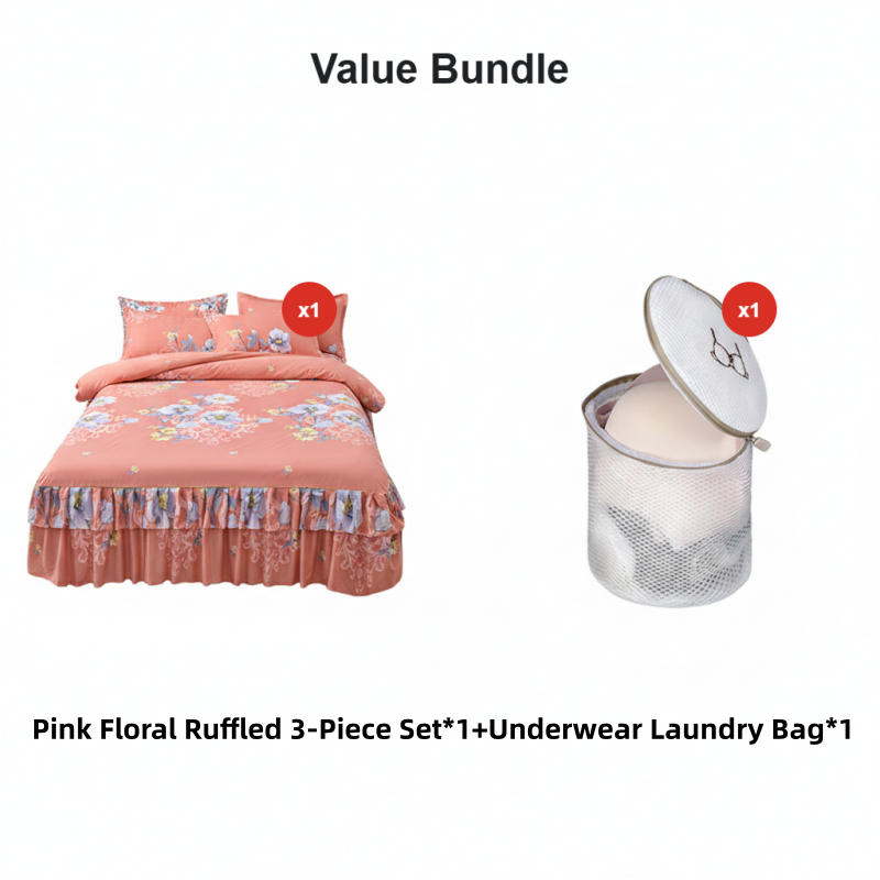 הדפס פרחוני עז + קפלים דו-שכבתיים + חצאית מיטה משולבת + בד מוברש רך + סט שלם של 3 חלקים - מגוון צבעים/מידות! 🛠️