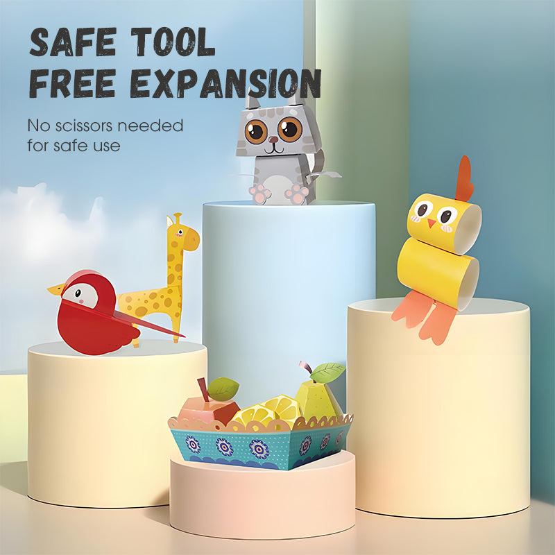 עיצוב בטוח וללא כלים: בטיחות היא בראש סדר העדיפויות. הספר כולל תהליך חיתוך במות עם ממברנות נייר עם קווי חיתוך מובנים, המבטל את הצורך במספריים. זה הופך אותו למושלם לילדים צעירים, ומאפשר להם ליהנות מאוריגמי ללא סיכון של חתכים, ומעניק להורים שקט נפשי.