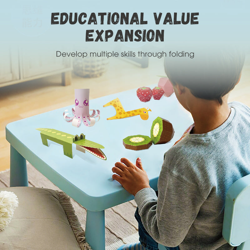 חווית אוריגמי תלת-ממדית מרתקת: ספר האוריגמי הידני תלת-ממדי מציע פעילות מרתקת ואינטראקטיבית. עם שלושה סטים הכוללים 49 דפוסים ייחודיים, הוא מייצר חיים בעבודות תלת-ממדיות של בעלי חיים, פירות וצורות קלאסיות. זה לא רק מספק שעות של בידור, אלא גם משדרג את היצירתיות, כישורי המוטוריקה העדינה והדמיון המרחבי של הילדים כאשר הם הופכים נייר שטוח למודלים תלת-ממדיים מפורטים.