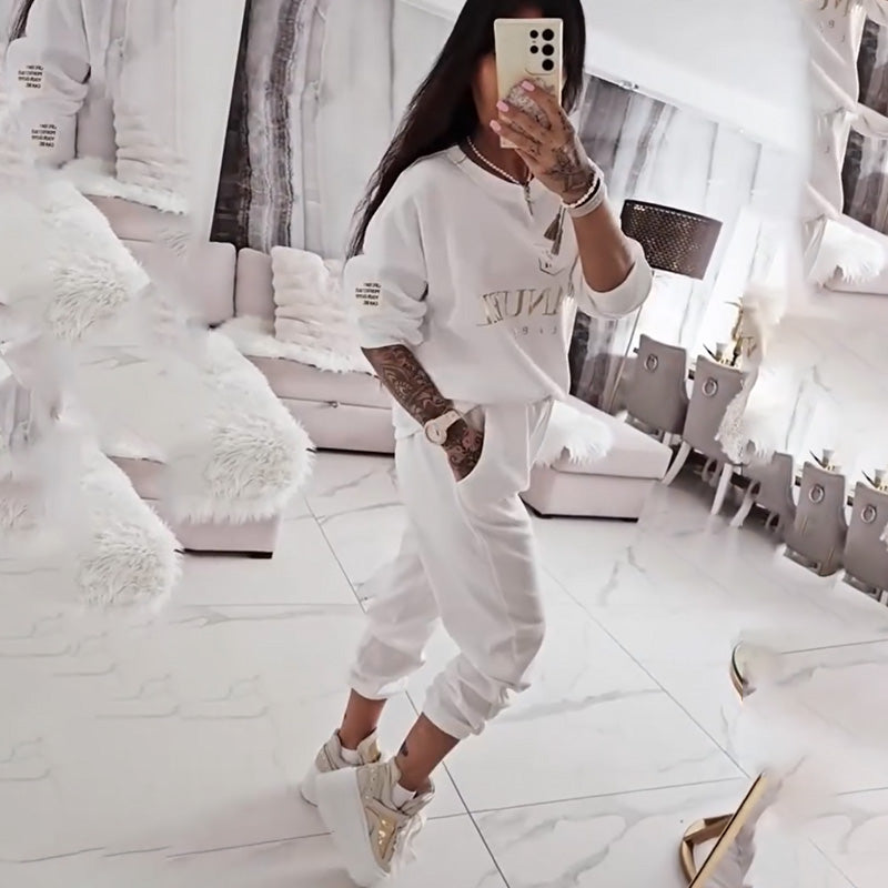 עיצוב הדפס אותיות נועז - הדפסי האותיות הבולטים מוסיפים נגיעה של סגנון מודרני ואינדיבידואליות לסט. פרטים אלו מושכי עין משדרגים את התלבושת, ומאפשרים לך לבטא את חוש האופנה הייחודי שלך מבלי להציף את המראה הכללי.